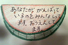 | Powerless Days 1608 11/8/21 家人が東北から帰ってきた。 「お土産」と渡されたずっしり重いものは、「砂糖」だった。 ???でいっぱいな頭でパッケージを見たら 「生産者の自立を応援します」とある。 そか、"食べて応援"というあれだな。 しかし東北で砂糖って・・・とさらによく見たら「フィリピン産」 ・・・・いや、フェアトレード支援は大切だ。 どこでいつ買おうが問題ではない・・・はずだ。 しかしそのあと手渡されたお菓子。 これに手書きのメッセージカードがついていて、 「おうえんしています」 「・・・・あの、これ・・・・?」 「大阪から来た人がイベント会場で配ってはったんや」 な ぜ ア ナ タ が も ら う か。 「あー応援してくれてはるんや思て」 ![]() 心を込めてこんなカード作ってくれた方。ほんとに申し訳ない。 |